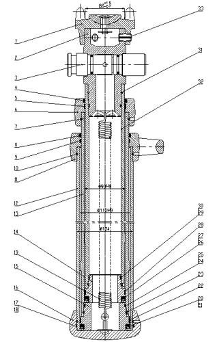 雙伸縮單體液壓支柱由1. 鉸接頂蓋 2.內(nèi)接柱頭 3.三用閥 4.防塵圈 5.導(dǎo)向環(huán) 6.中缸帽 7.連接鋼絲 8.防塵圈 9.導(dǎo)向環(huán) 10連接鋼絲 11手把體 12.外缸 13.中缸 14.活塞 15.活塞 16.底座 17.擋圈 18.O形圈 19.復(fù)位彈簧 20.Y形圈 21.擋圈 22.導(dǎo)向環(huán) 23.連接鋼絲24.O形圈 25.擋圈 26.Y形圈 27.擋圈 28.導(dǎo)向環(huán) 29.擋圈 30.O形圈 31.連接鋼絲四 32.活柱 33.彈性圓柱銷零部件組成。